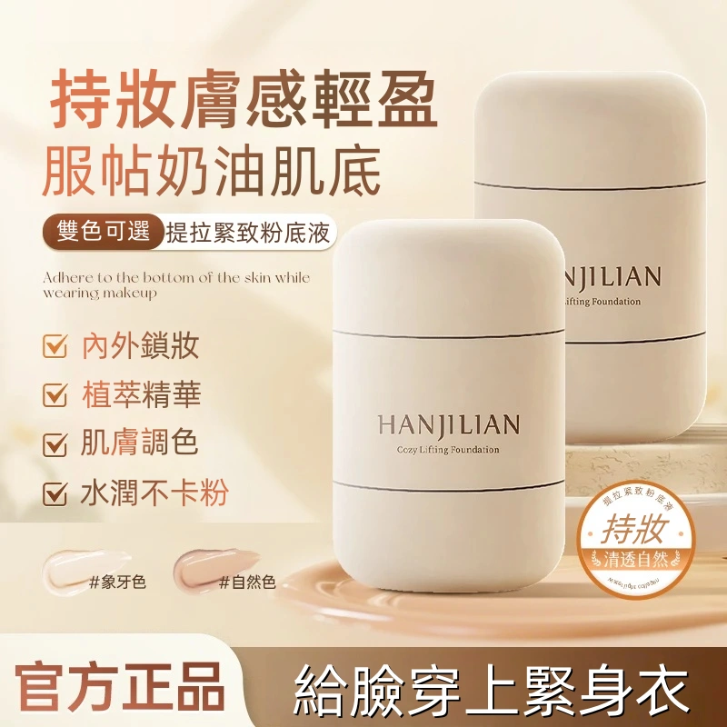 提拉提拉!你的面部肌膚!【緊身衣持妝粉底液】台灣專櫃出貨!!提拉緊緻粉底液保濕霜,自然水潤奶油機持久不脫妝不卡粉 貨到付款 正品保障